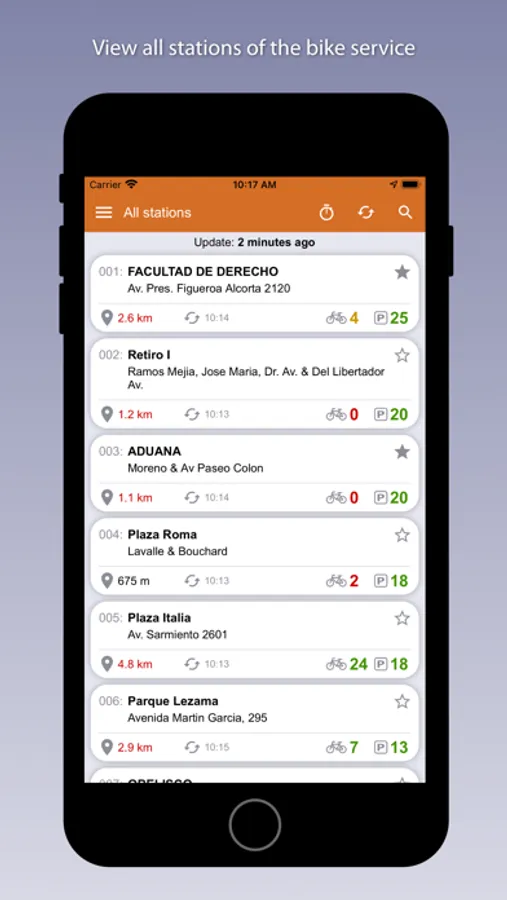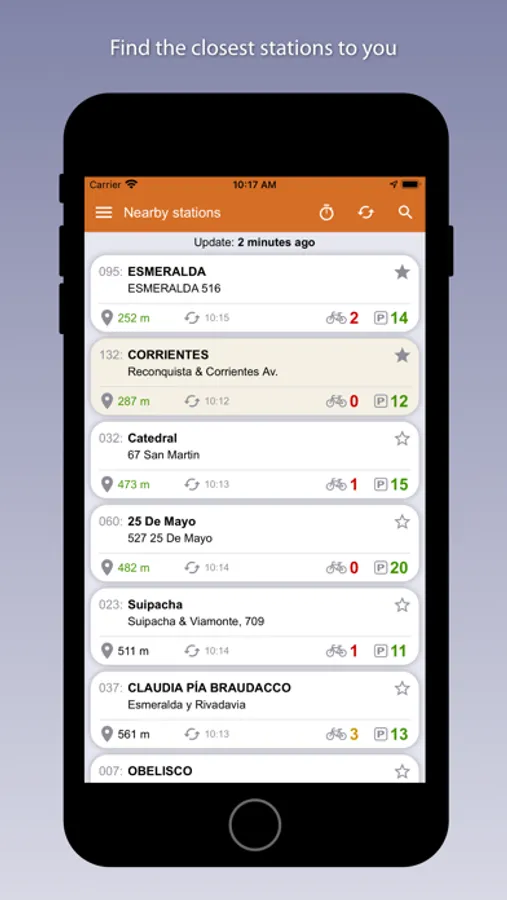 - List of stations closest to you according to your current position.