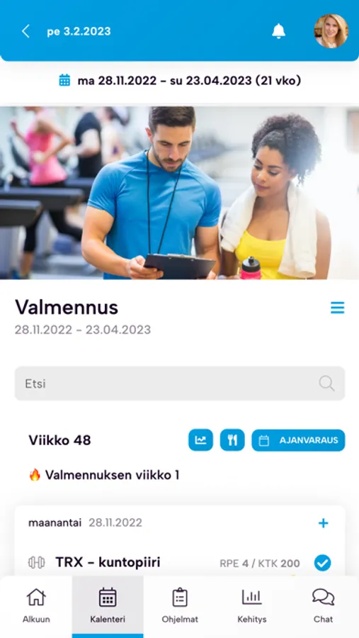 Aloita matka kohti terveellistä elämää! Sovellus sopii Movet Ladies Kuntokeskuksen asiakkaille sekä kaikille naisille ja miehille, jotka ovat kiinnostuneita omasta terveydestä ja hyvinvoinnistaan. Movet Studio on treeni- ja hyvinvointisovellus, oma virtuaalikuntokeskuksesi, josta löydät mm. harjoitusohjelmasi, voit seurata kehitystäsi sekä tarkastella treenihistoriaasi. Sovellus on suunniteltu tukemaan arkiaktiivisuuttasi, vapaa-ajan liikkumista, terveellistä ravitsemusta, palautumista ja stressinhallintaa. Ladattuasi Movet Studio treeni- ja hyvinvointisovelluksen saat tervetulopaketin, jossa vinkkejä oikeaan liikunnan annosteluun, kuntosaliohjelman, kohti terveellistä ravitsemusta, venyttely ja rentoutumisharjoituksen. Jatkossa voit valita palveluista, joita käytät; Movet Ladies Kuntokeskuksen asiakkuus, erilaisia verkkovalmennuksia- tai kursseja naisille ja miehille, jumppia, seurata kehitystäsi sekä tarkastella treenihistoriaasi ym. ym. Sovellus on veloitukseton.