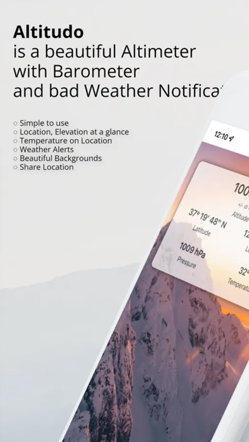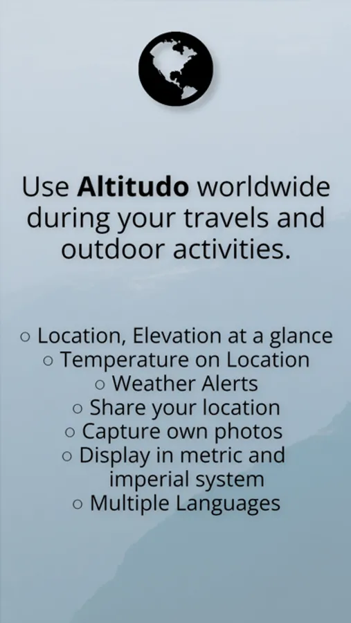 Altitudo's carefully selected features are combined with beautiful changing background images. Want even more variety in your images? Just take your own picture and add it to the app's wallpapers.