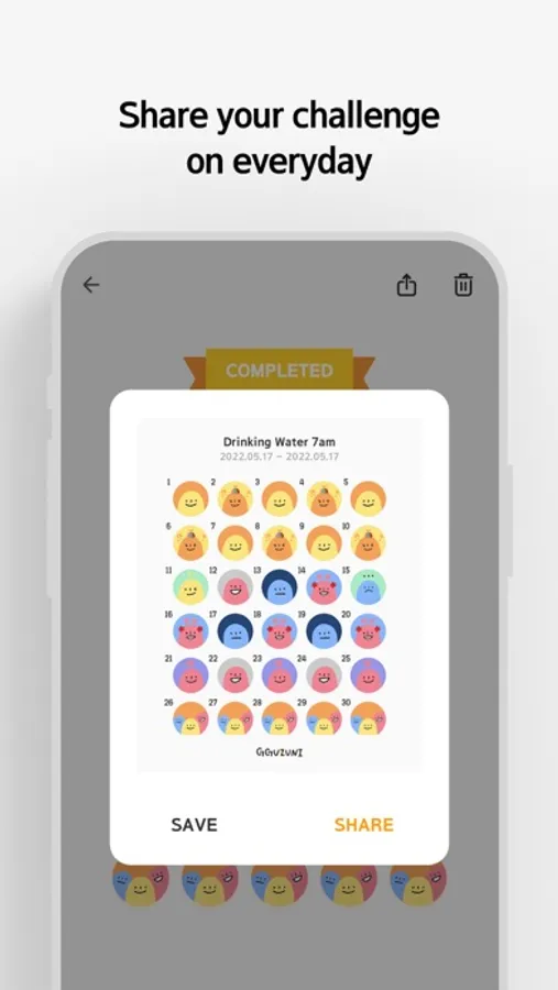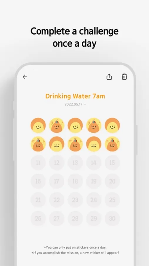 You can complete a challenge everyday. Click a number and put the sticker on it.