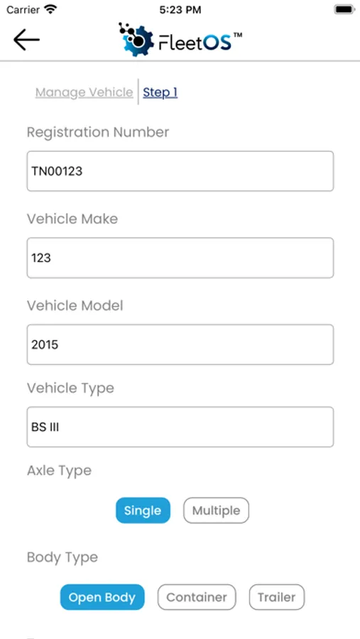 FleetOS application is a simple fleet management system which allows a person to manage some or all of the tasks associated with managing a fleet of vehicles. Specific tasks include registration, login, home, manage vehicle, checking RC and check license.