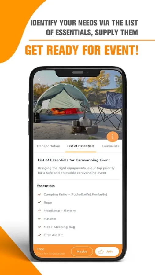 For the event you have chosen you can get ready by looking at the list of materials required for the event you have chosen, you can find out about the weather, get detailed information about the event location, and you can make all your preparations in an organized manner by talking with the other participants of the event thanks to the event chat group.
