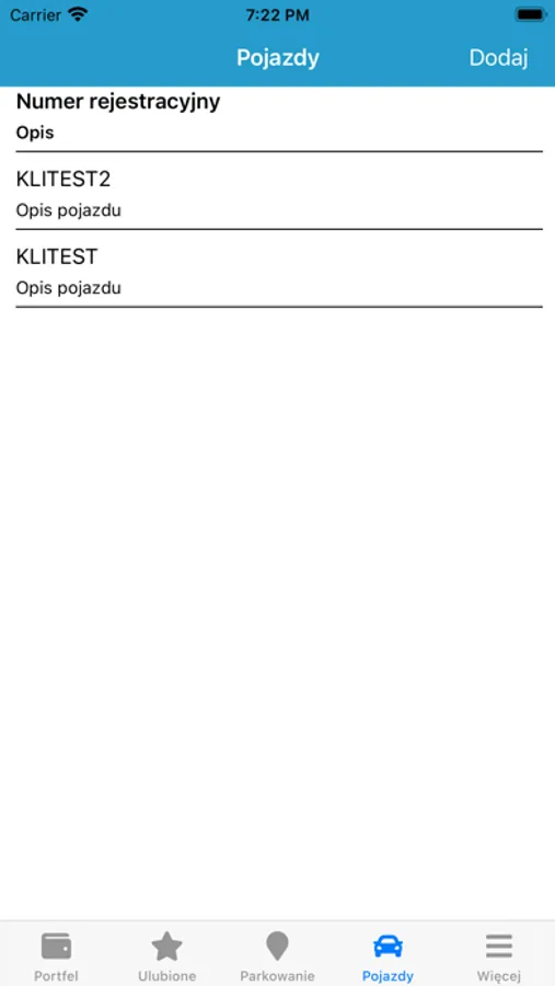 2. W zakładce "Pojazdy" dodaj swój samochód.
