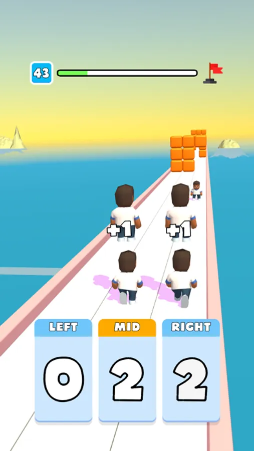 You can collect humans for your stack / human tower. Tap to any card to shape stack. Each card represents a lane. A lane can have 6 people at top and 0 at minimum. If you don't have any human in your stack, you'll fail level. Make sure you reached to finish line to complete the level. Easy to learn and pickup, hard to master and drop!