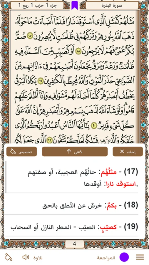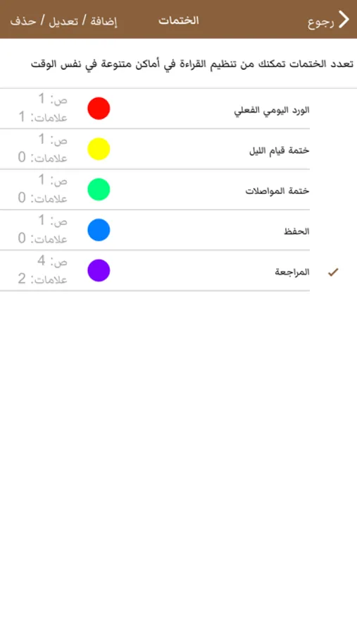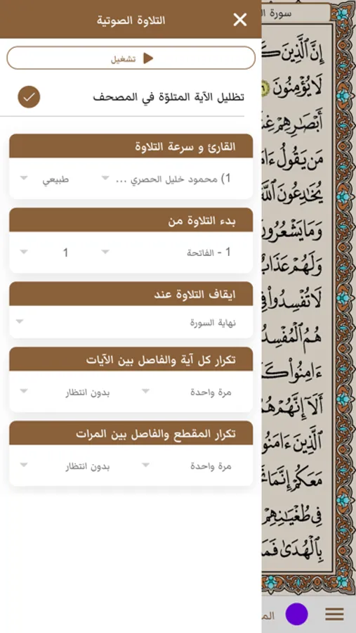 - امكانية الإنتقال الى بداية المصحف بعد الختم