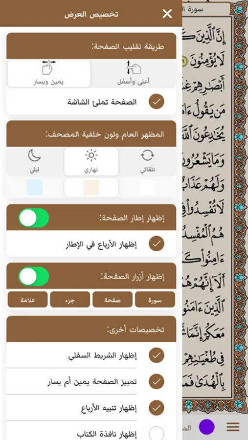 - إظهار أو إخفاء الإطار المزخرف المحيط بالصحفة, مع امكانية تخصيص محتوياته