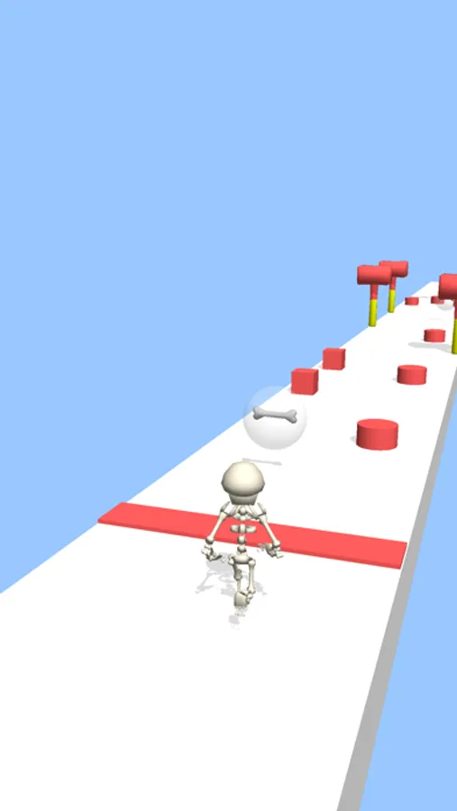 Try to get to the finish before getting destroyed! Don't hit obstacles or you will lose a bone or two!