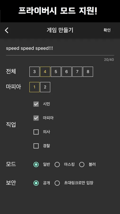 직업: 마피아, 시민, 의사, 경찰 (추가 예정)