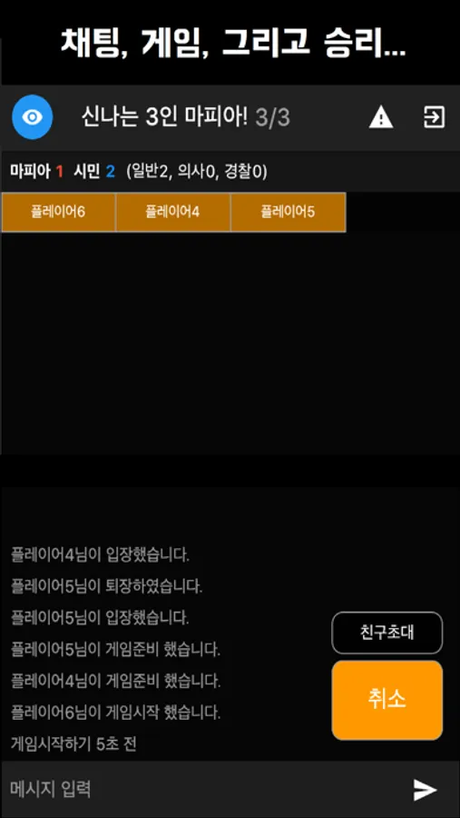 핸드폰에서 통해 친구, 혹은 모르는 사람과 마피아 게임을 즐겨보세요.