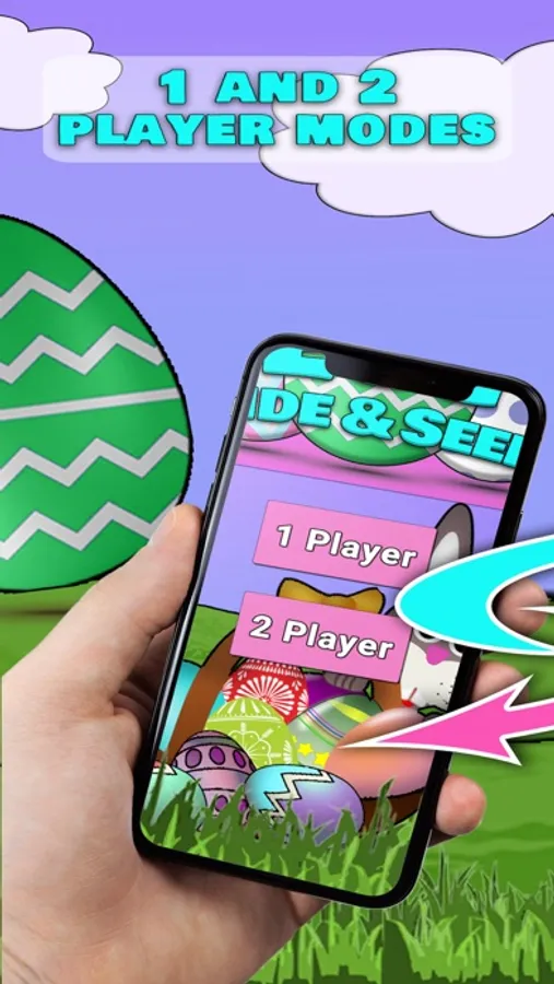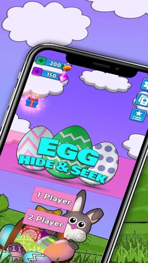In 1 player mode, Egg Hide & Seek scans your surroundings and automatically hides eggs for you. The more you scan, the more hiding spots are available. Choose "Egg Rush" mode for a fast-paced adventure.