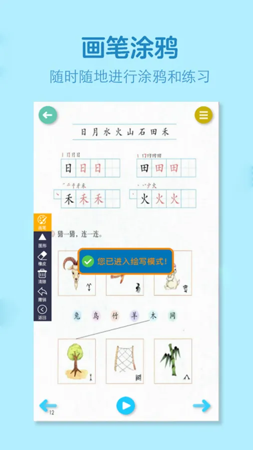 【2】画笔功能,全屏涂鸦让学习更加的有趣让学习更加高效率。完全同步最新发行教材,绝无缺漏页现象。