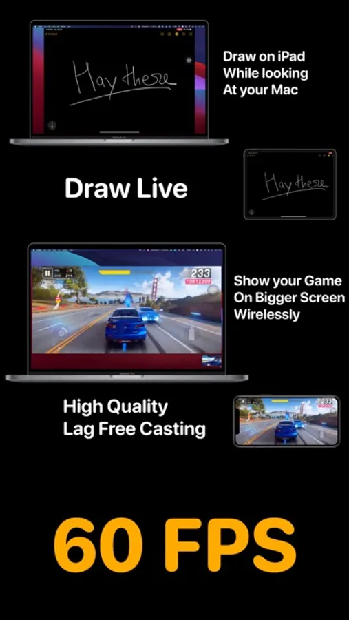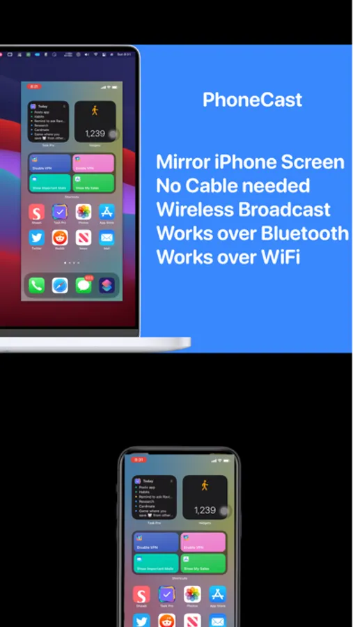 Casting is high quality and very smooth at 60 frames per second. You will love it. PhoneCast is a universal purchase. You buy it once and use on your Mac, iPhone, and iPad. PhoneCast is most up to date app and fully supports iOS 16, M2 Macs and latest macOS 13 Ventura. You can cast your iPhone or iPad's screen on to your Mac without requiring any cables or wires.