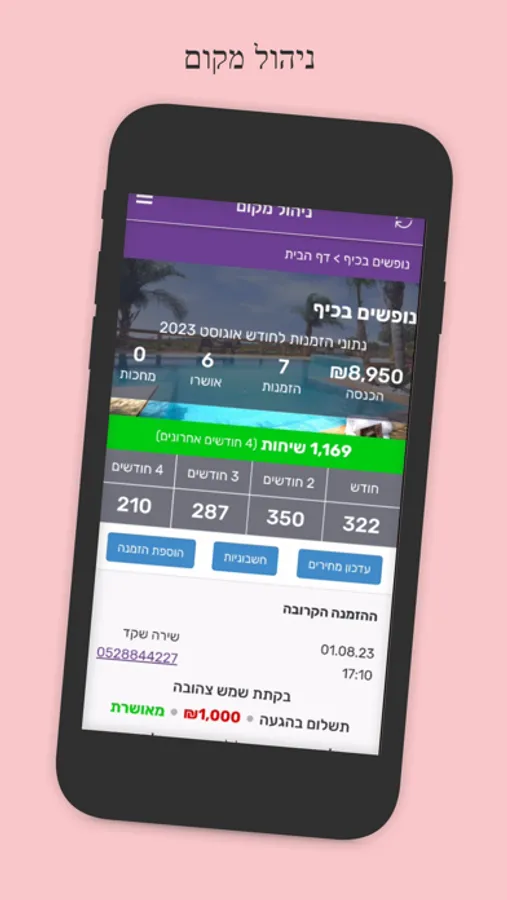 צפייה בשיחות, ניהול הזמנות, הורדת חשבוניות, צ'אטים עם לקוחות, עדכון יומן תפוסה ועוד..