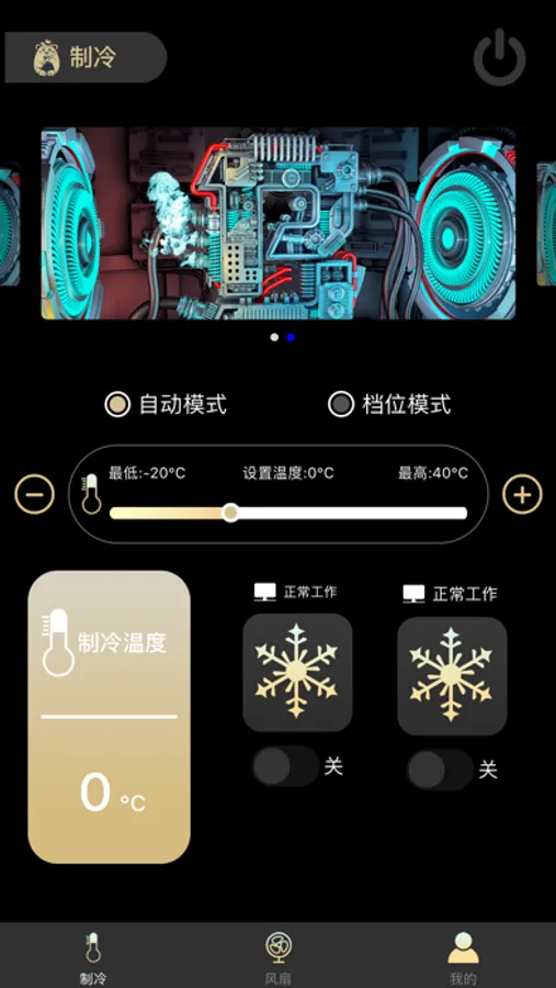 游漫萌是一款蓝牙半导体水冷散热产品,游漫萌App通过蓝牙连接智能散热器,App可以设置智能散热器制冷温度使设备智能降温;或者切换到档位模式通过设置5档固定输出制冷。App还可以单独控制2个制冷头的开关、调节散热器风扇速度、设置风扇灯光颜色效果;同时还可以设置App断开自动关机等功能。