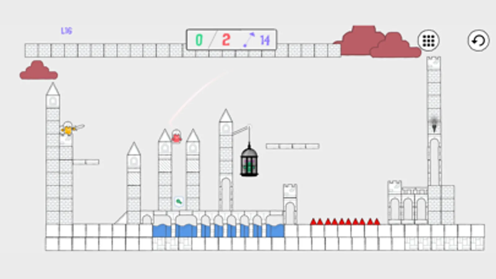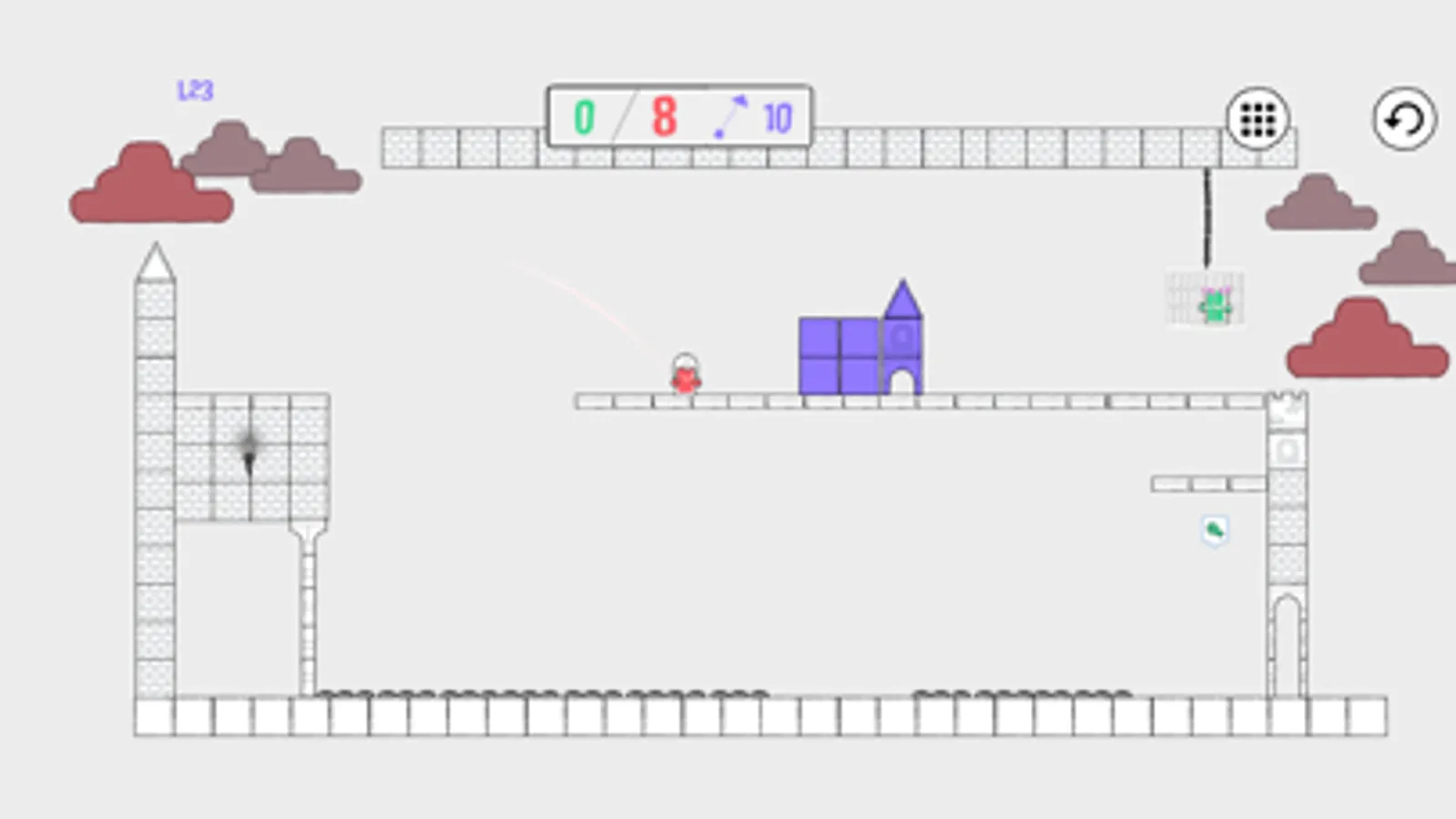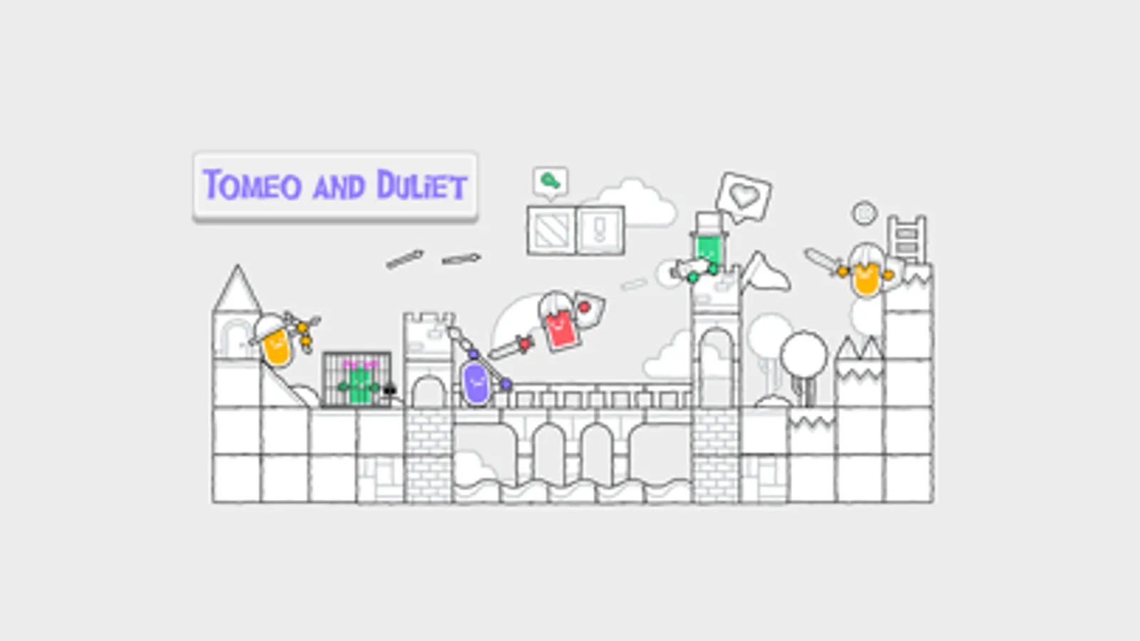 Duliet has been kidnapped by a clan of evil doodles. She has been hung from the highest tower of the castle, inside an iron cage. Duliet cries inconsolably and waits impatiently for her rescue.