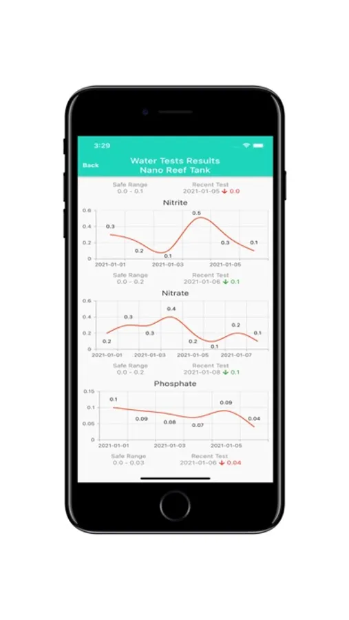- View test results of your tank's water parameters graphically
