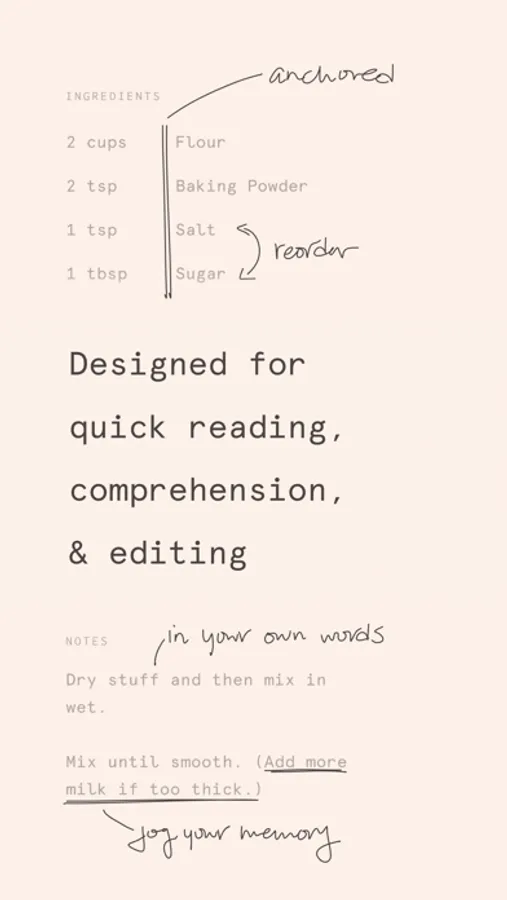 Don't lose track of the personal adjustments you made to your favorite dishes. Edit recipes with ease, and keep all your inspirational apps, YouTube channels, and blogs, organized—use Mise to document those contentful links.