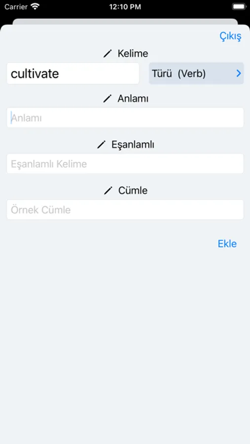 Uygulama kendi kelimeleri eklemenize ve bu kelimeleri kartlar ve testler sayesinde öğrenmenize katkı sağlayacak şekilde hazırlanmıştır.
