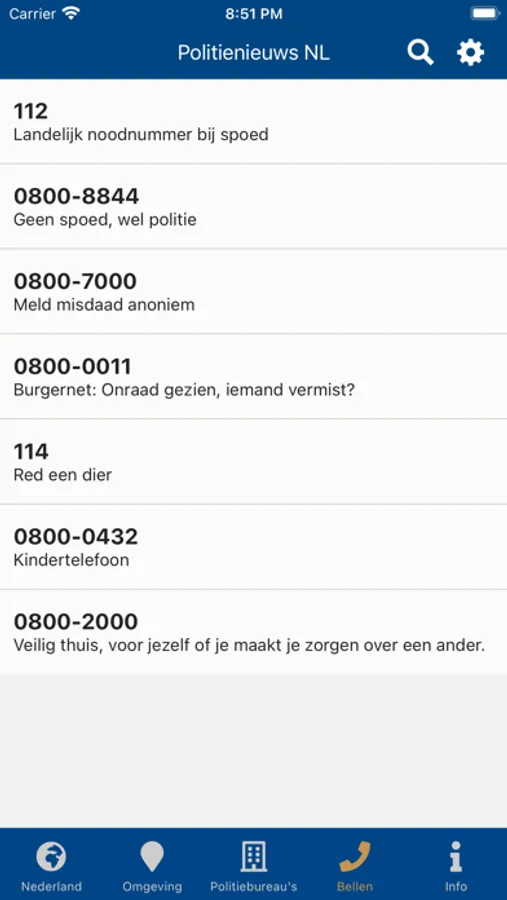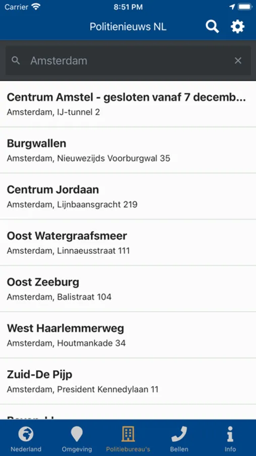 Gebruikers kunnen zoeken naar politiebureau's in de buurt en ontvangen pushberichten met politienieuws van de Politie in hun omgeving en kunnen het alle nieuwsberichten voor heel Nederland terugvinden in deze app. Daarnaast kan ook op plaats worden gezocht naar lokaal politie nieuws. Er kan ook worden gezocht naar politiebureau's in de buurt van een zelf op te geven locatie. Kaart, route, adres en telefoonnummergegevens zijn beschikbaar.