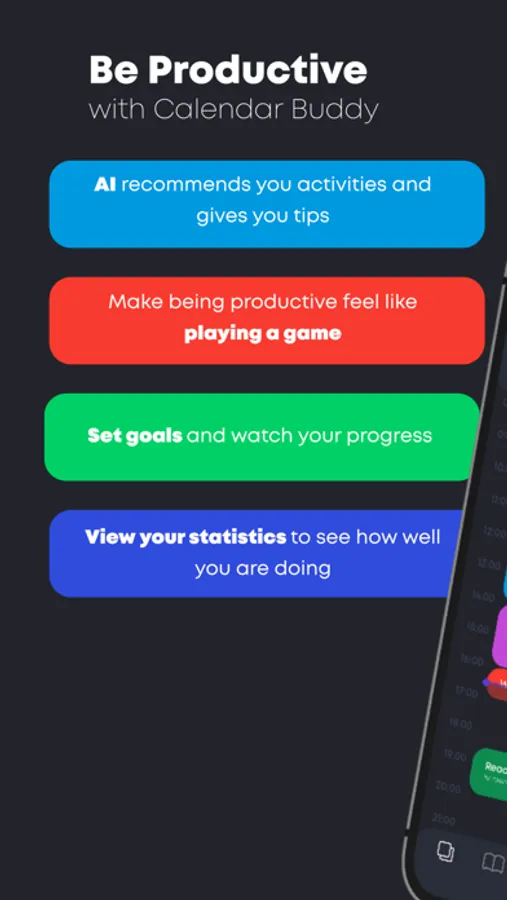 In order for you to easily get into good habits, Calendar Buddy prompts you to achieve your goals by keeping track of them. Log any goal, big or small, and celebrate your success with Calendar Buddy. Watch your progress as you input activities into your daily schedule.