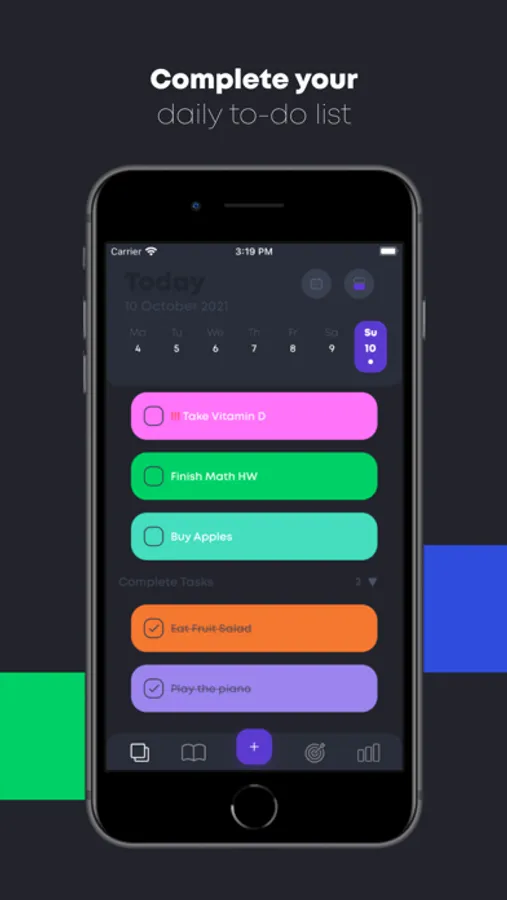 This section is simply your to-do list. It is something you have to complete at any point throughout the day, which doesn’t necessarily fit on your timeline as an activity. Need to make a phone call or water plants? Add it to your Tasks.