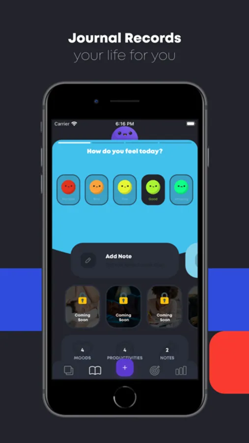 A whole page dedicated to daily notes and reflections for your days. You can see the overview of your past entries.