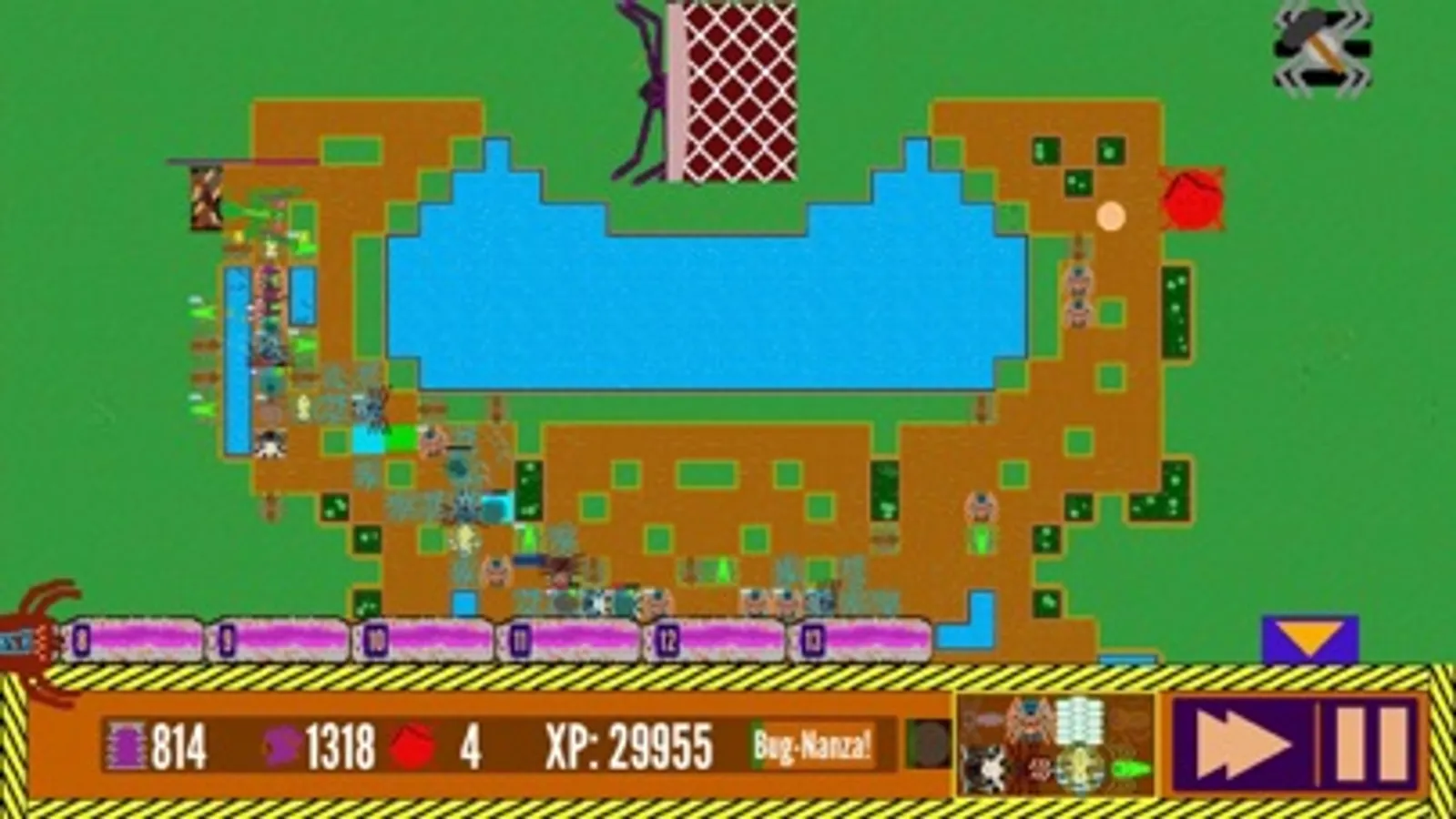 As the commander of an elite squadron of supercharged spiders, it's your responsibility to strategically place and upgrade spiders in your squad along the path to most efficiently eradicate the stream of bugs attempting to take over your territory, eat your spiderlings, and annoy the humans. With a variety of enemy types to face and an array of upgradeable spiders at your disposal, do you have what it takes to stop the baddest of the bugs?