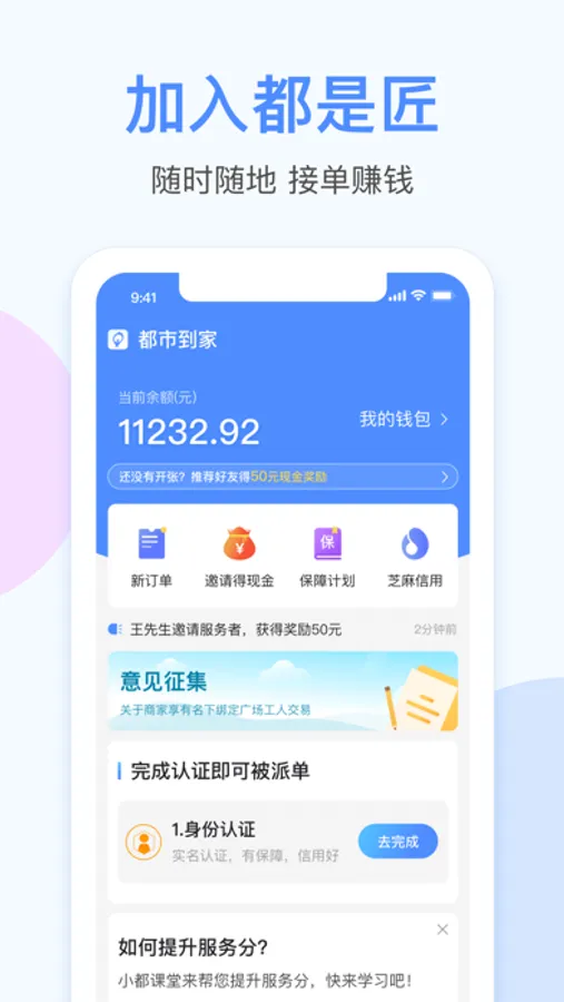 都市到家成立于2017年,是一家互联网家政预约平台,入驻商户超5万家,累计服务用户超2000万,覆盖全国280多座城市。都市到家平台以丰富的客源和诚信的态度成为每位商户寻求合作的首要选择,选择都市到家,就是选择了高效、选择了安心!
