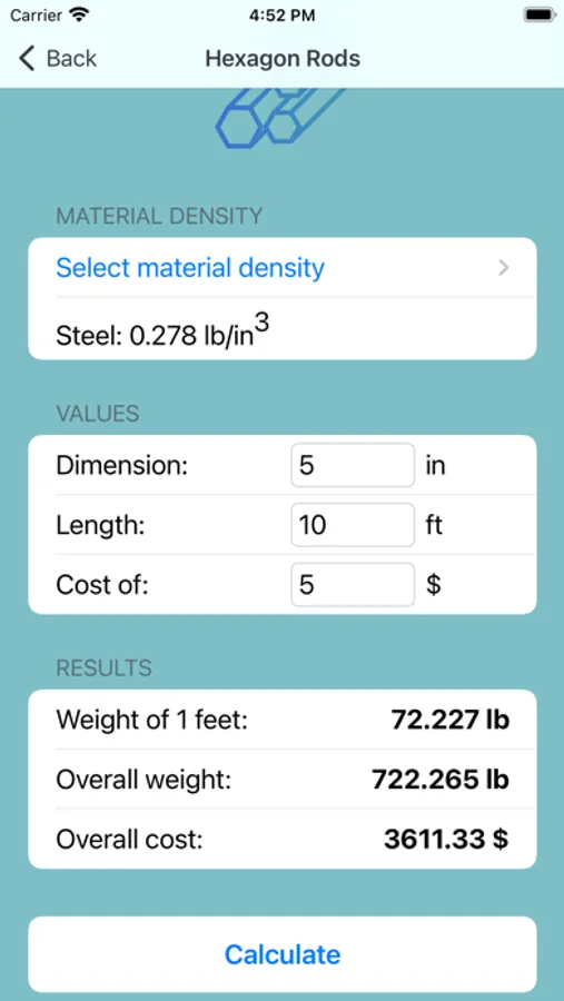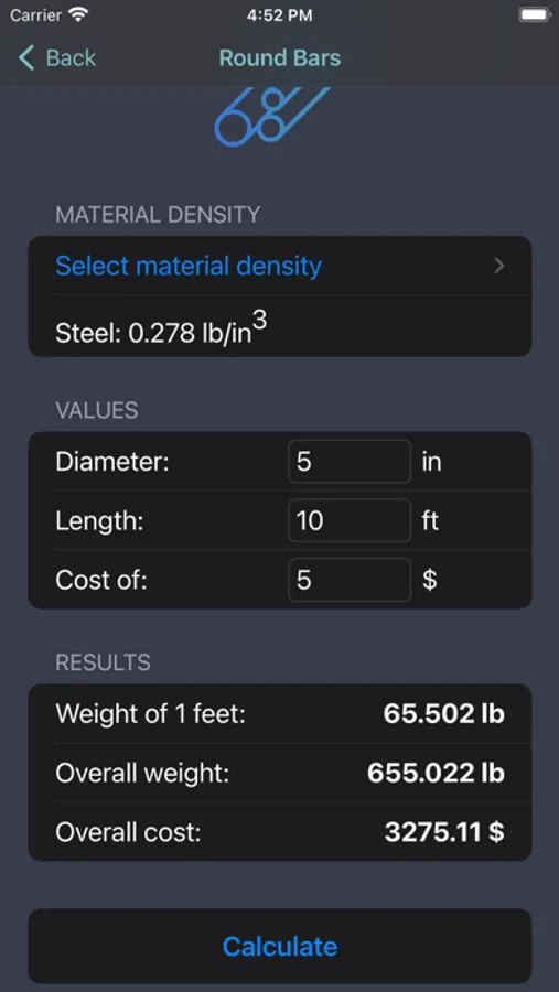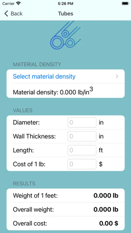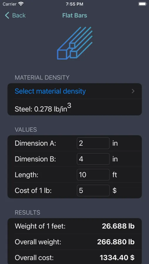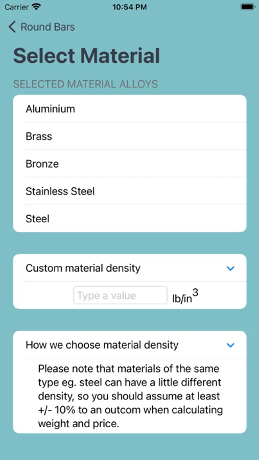Material calculator allows for a fast calculations of weight and cost of machining materials. Supported materials: