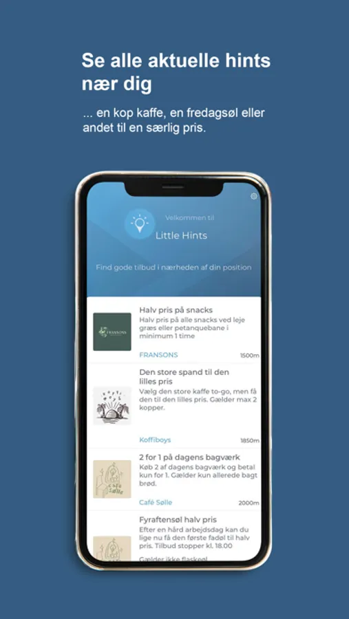 Little hints appen giver hints til dig, ud fra din lokation. Du vil altså kun få en notifikation omkring et tilbud, hvis du befinder dig i nærheden. På den måde hjælper vi dig hen til en kop kaffe eller andet, og du får ikke bare et godt tilbud. Du støtter også lokalt - og det er der brug for.