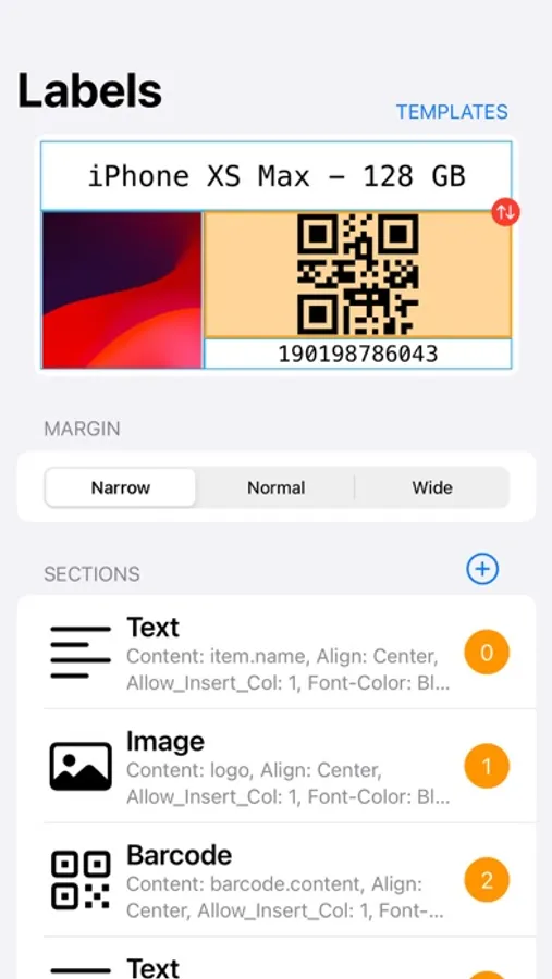 • Supports EAN 8, EAN 13, UPC and Code 39/93/128/QR/QR mini for custom SKU codes.