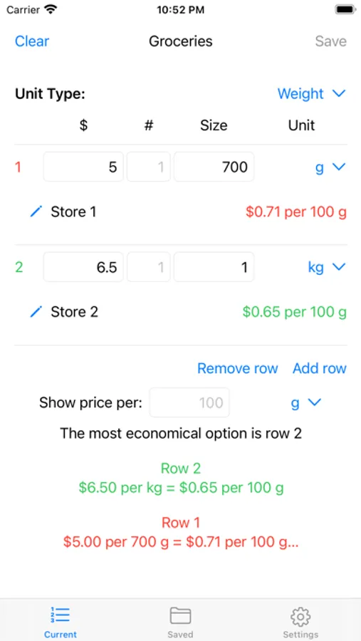 Unit-Price Calculator Screenshots