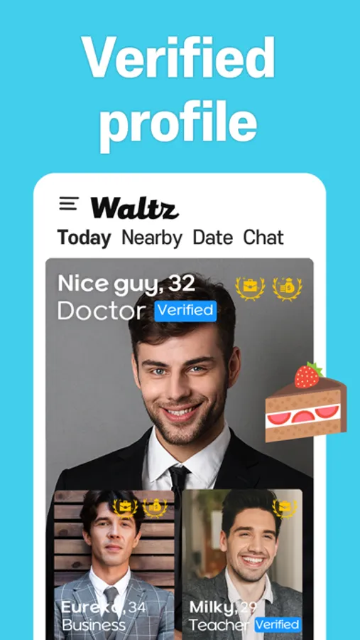 All users of Waltz have authenticated their selfies and are actual users who have blocked photo theft and bad subscription.