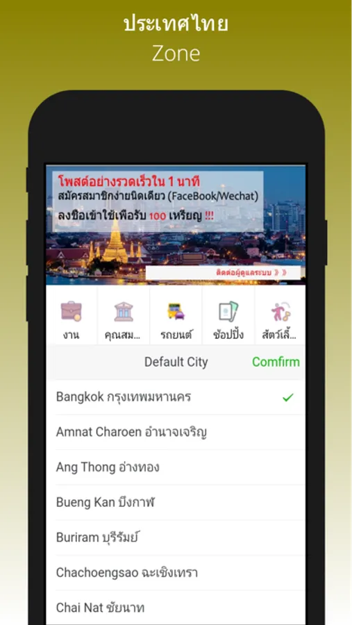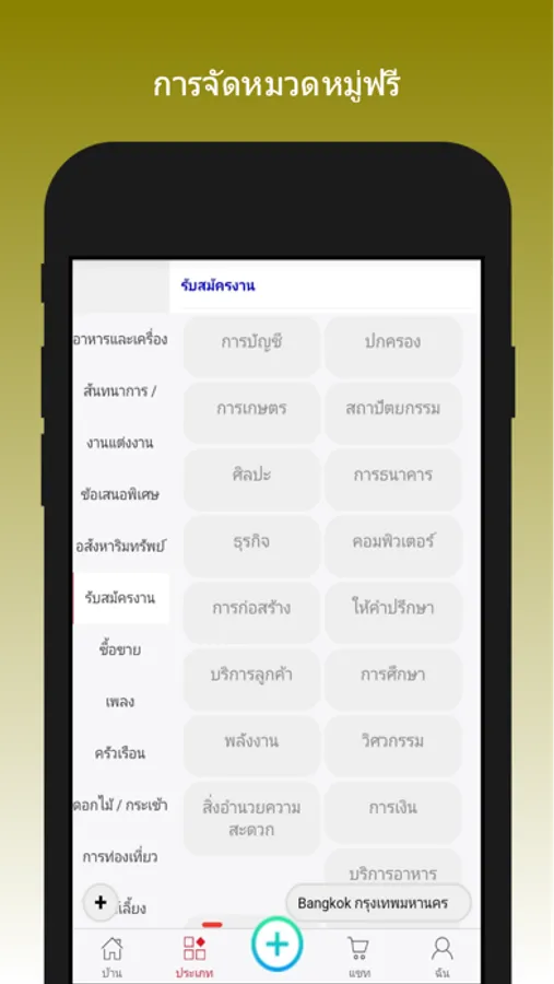 แอพประเทศไทยที่มีการจัดหมวดหมู่สำหรับงาน, บ้าน, การขาย, รายการที่ต้องการ, บริการ, บริการชุมชน, การแสดง, ประวัติย่อ ...