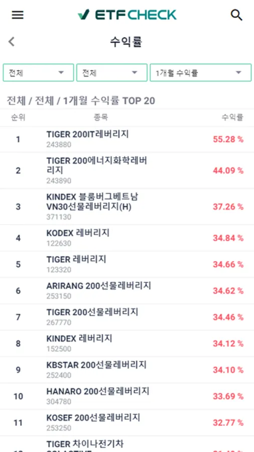 - 일간/주간/월간 수익률, 거래량, 자금유입 순위 보기