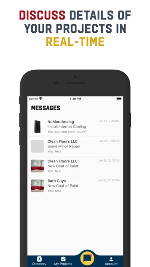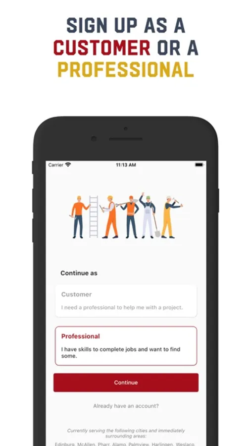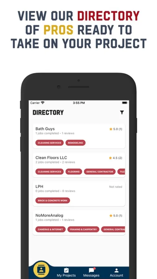 Our app lets our customers get those a-bit-too-busy-to-handle jobs done easier than ever before by simply creating a project, uploading pictures (optional), and either sending it to a specific Professional or leaving it open and published on the Professional Job Board- where dozens of pre-reviewed and dedicated Professionals will be able to view your project and message you their quotes and availability. All with the security of never having to give out your personal phone number and having the support of Los Pinos Hardware Co. by your side.
