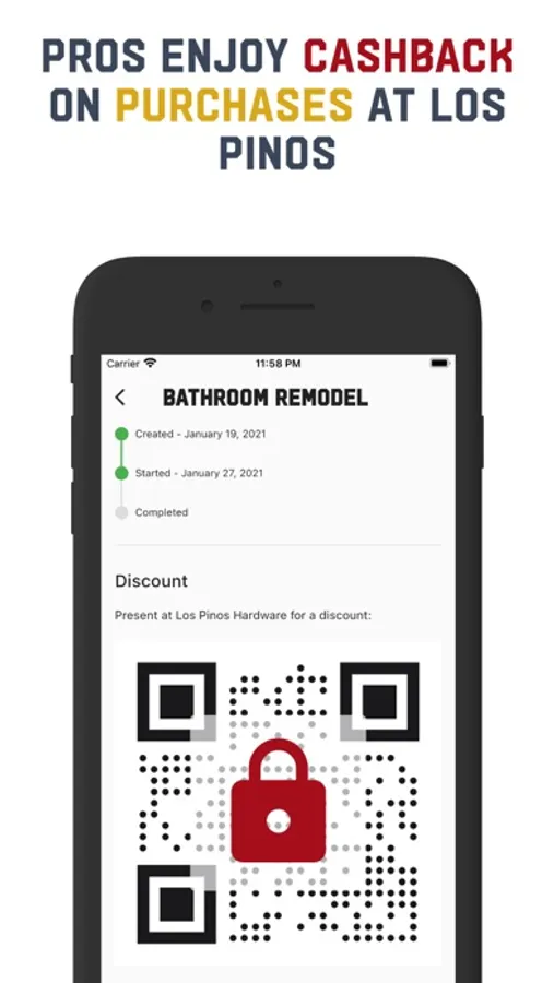 Pros: Get access to local jobs and projects that real people are in need of completing or having done. It's as simple as inquiring about a Job and once you're selected, enjoy CASH BACK on-the-spot on ANYTHING you need to complete the project! Just simply grab what you need at any Los Pinos Hardware Co. store near you, present your QR code for that Job to the cashier, and done! Get a % cash back from the total on all items by just doing what you love through our app.