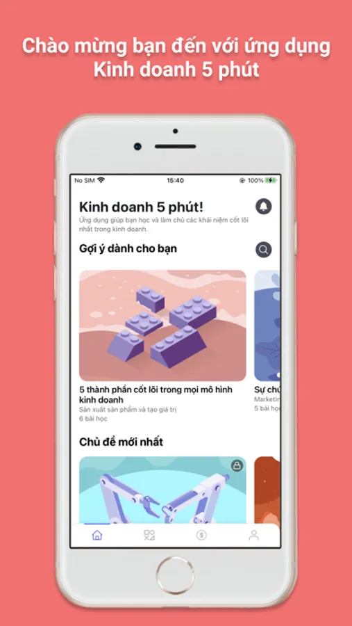 Kinh doanh 5 phút là ứng dụng giúp bạn học và làm chủ 500 khái niệm cốt lõi nhất trong kinh doanh chỉ trong một thời gian ngắn, để nhanh chóng áp dụng cách tư duy của những nhà kinh doanh hàng đầu.