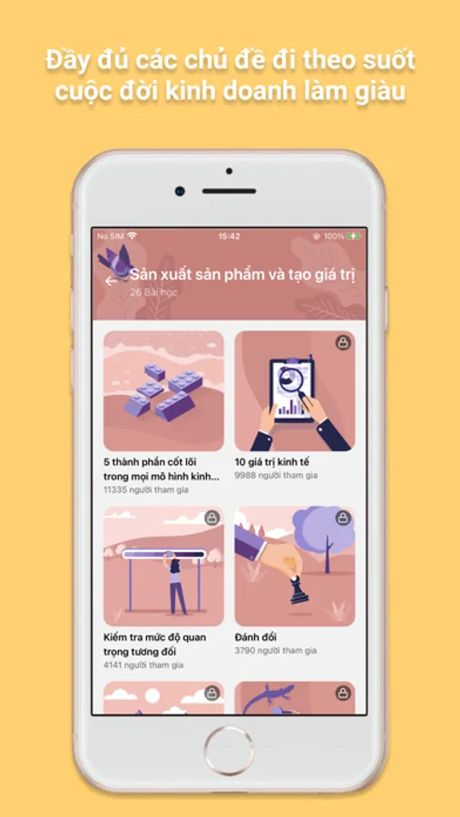 Người dùng của ứng dụng có thể chọn lựa các chủ đề khác nhau thuộc lĩnh vực kinh doanh như: sản xuất, marketing, bán hàng, nhân sự…. để tìm hiểu thông qua các bài viết, audio và video với minh họa sinh động. Ứng dụng cũng cung cấp các câu hỏi để người dùng có thể hiểu và nắm rõ được từng lĩnh vực một cách nhanh chóng và biết cách vận dụng vào thực tế.