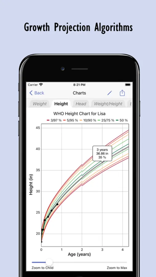 Predict growth with the free growth projection feature. All percentiles and Z-scores are calculated using the highly accurate LMS method.