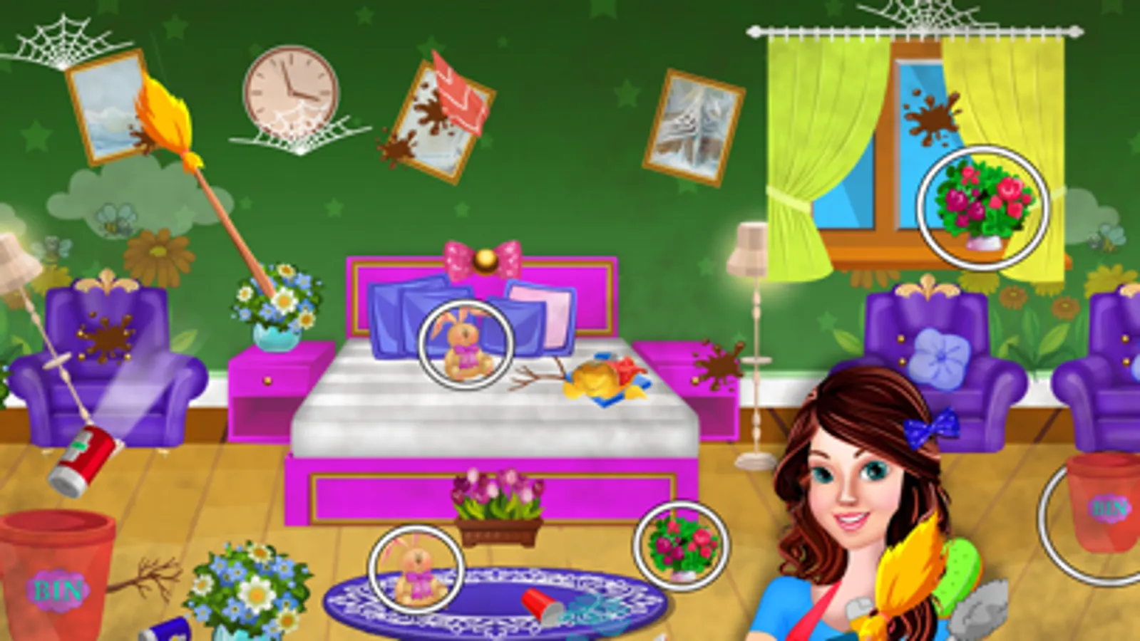 Welcome to your sweet dream house and messy home cleaning world where you have to keep your house clean. Come on, join & let’s help the girl to clean up a messy house. Never make the mess in your dream house and take care of all the room decoration in the dirty home cleaning fun game!. Help yourself with the messy home and start the house makeover!