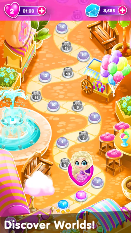 Travel through Shopping Street, Candy World, Snow Village, Princess Paradise and more to shop for the best, most stylish and beautiful outfits, accessories, shoes, make up.... and so much more.