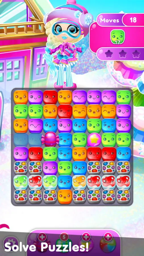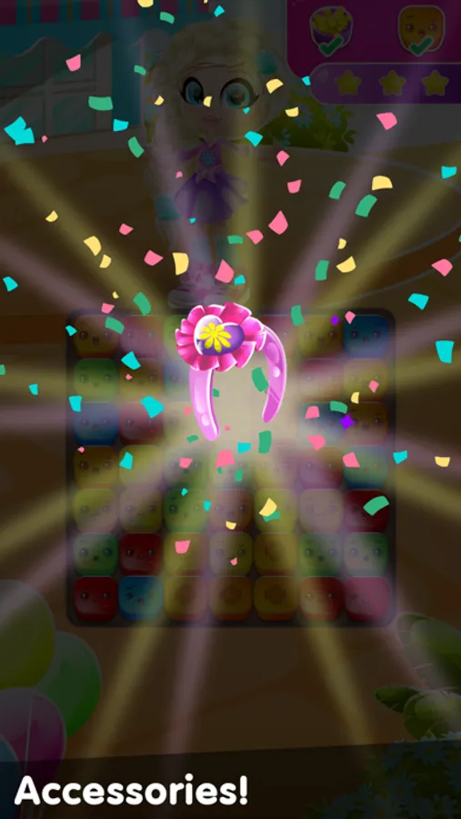 • Match puzzle tiles to collect designer shopping boxes with designer items.