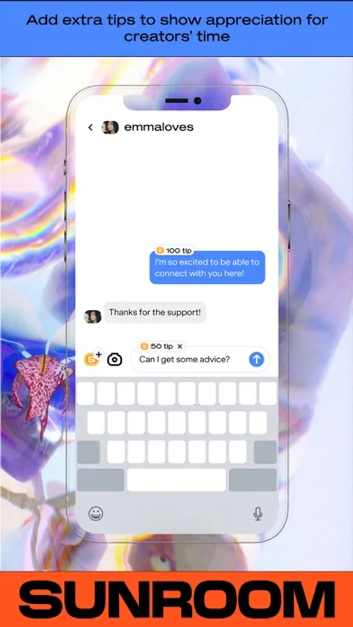 Attach tips to your DMs and comments using Sunbeams — Sunroom’s in-app currency. Tips help you to stand out, and they’re a more intimate way of letting creators know you appreciate their time and creative energy.