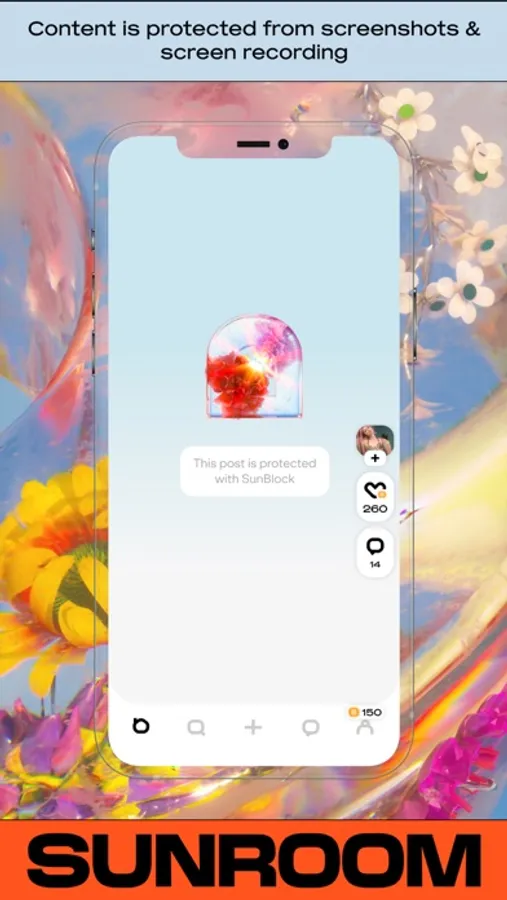 We’re called Sunroom because being in here feels like one: warm, safe, and fully seen. SunBlock — our anti-screenshot technology — prevents content leaks and keeps Sunroom private.