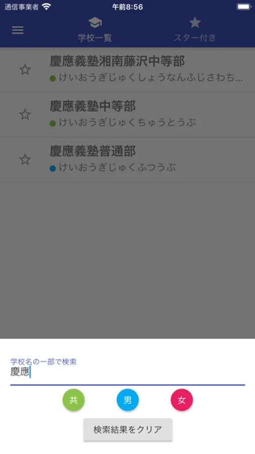 ・学校名の一部、共学/男子校/女子校を条件に検索ができます