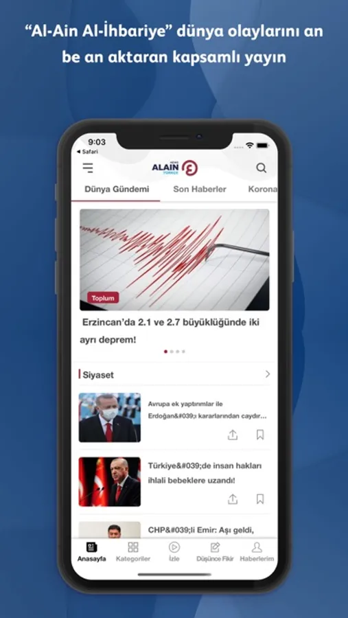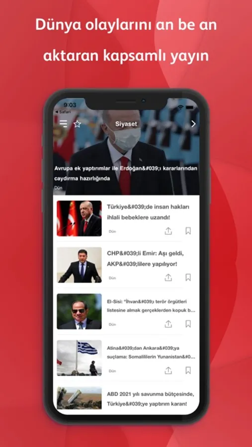 • Favorileri "Haberlerim" sayfasına kaydetme.