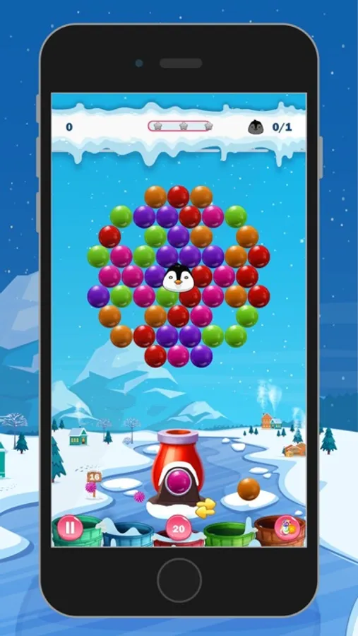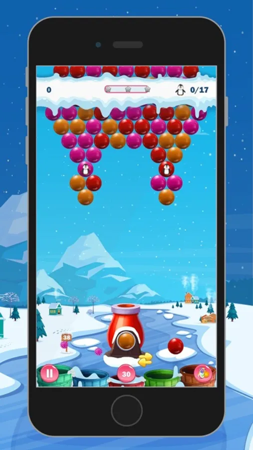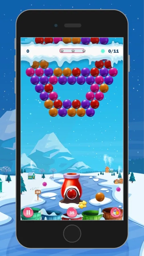 Match 3 or more bubbles of the same color to make them disappear and get score points.