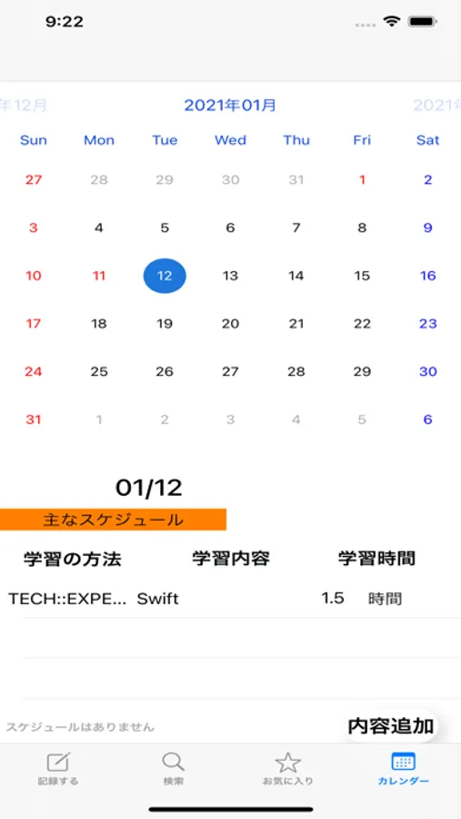 2、保存した学習記録をカレンダーで閲覧でき、内容の追加も可能