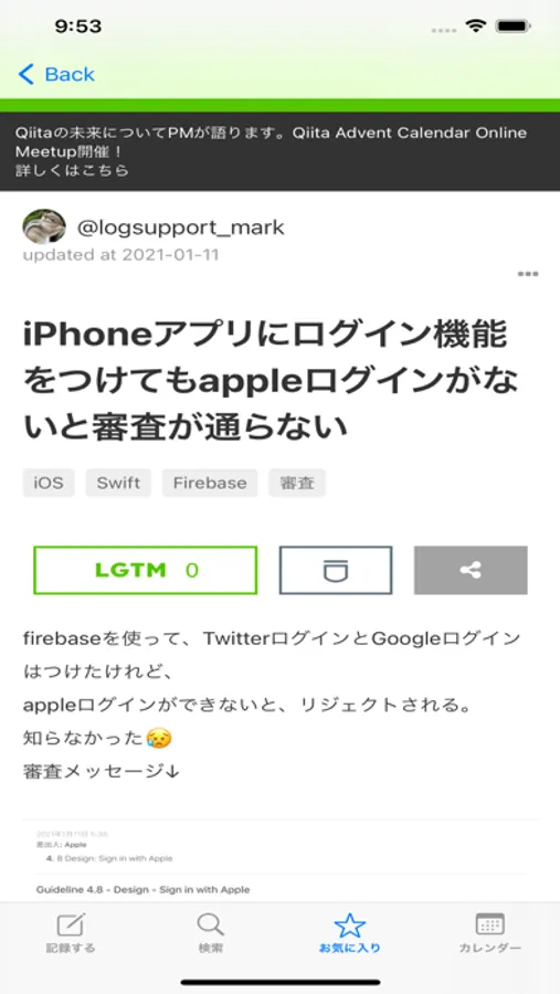 3、Qiitaで検索でき、さらにお気に入り追加をすることも可能